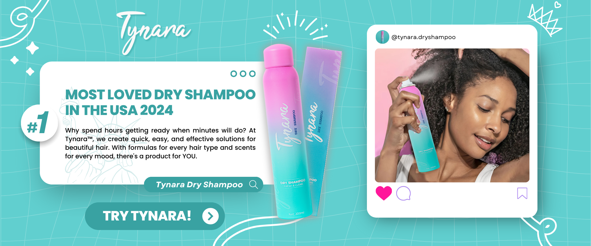 At Tynara, our mission goes beyond offering just a quick-fix dry shampoo. Our advanced, everyday haircare formulations are backed by science, enhancing your hair with more benefits, more style, and more protection – instantly!